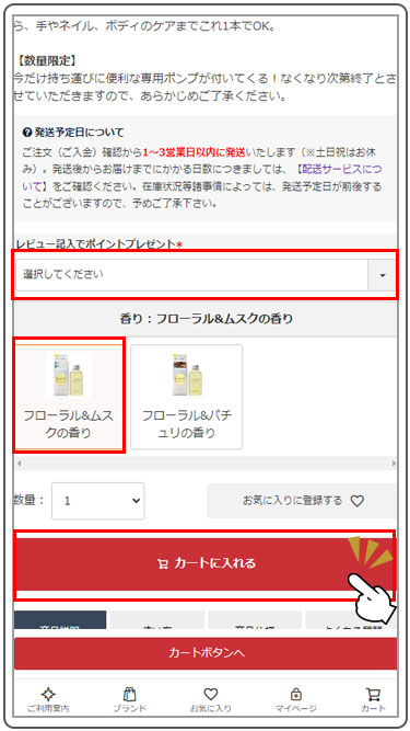 【1】ご希望の商品を選択し、カートに入れます。