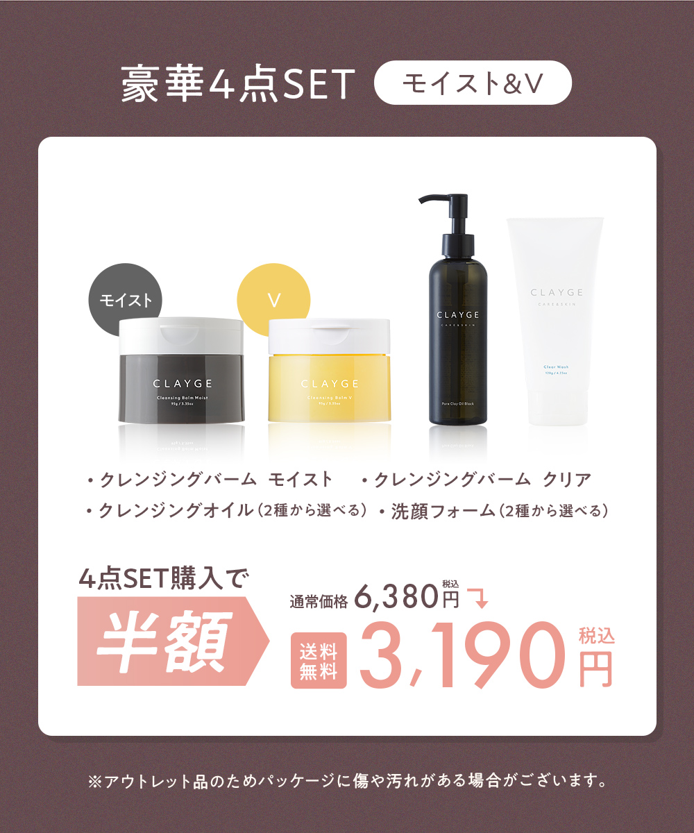 他の画像を見る キャンペーン期間中は50%OFF 【アウトレット品】【4点セット】クレンジングバーム(M&V)+クレンジングオイル+洗顔フォーム 送料無料 セット商品 定価 ¥ 6,380 のところ ¥ 3,190 税込 カートに入れる お気に入りに登録する